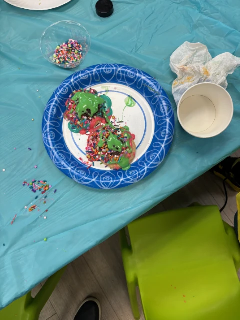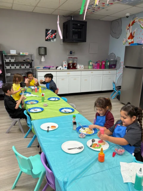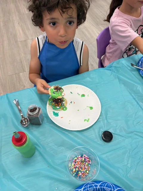 On Arts and Crafts Day, 30 kindergarten to 2nd grade children decorated sugar cookies with the help of volunteers Nicole Hinphy and Pat Walsh from the LD Resources Foundation.